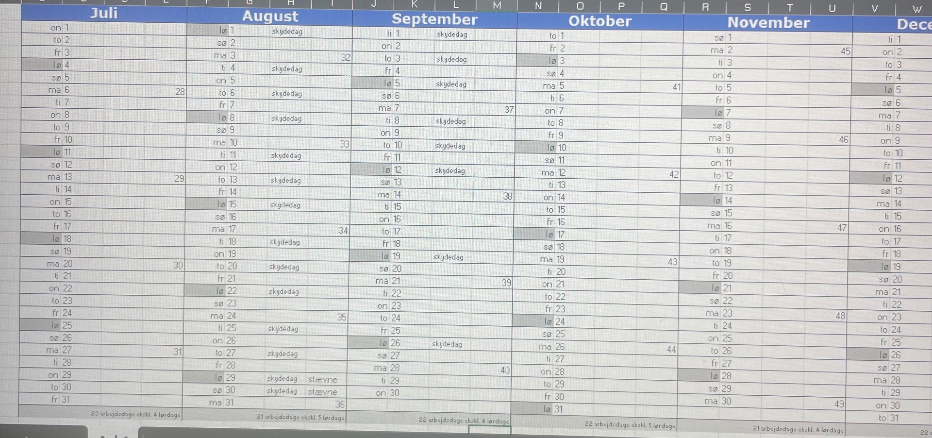 August: tirs. 4 + tirs. 11 + tirs. 18 + tirs. 25